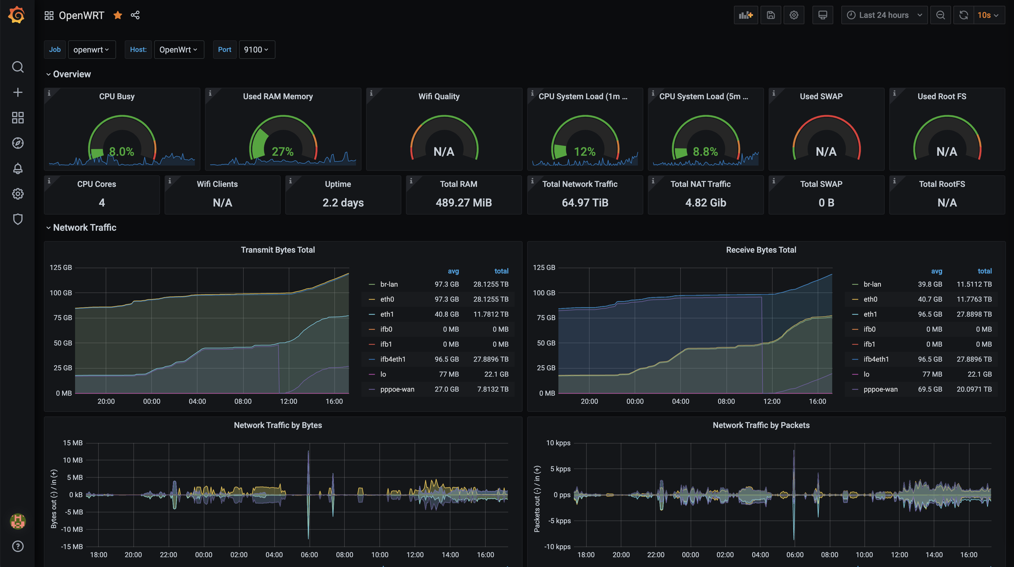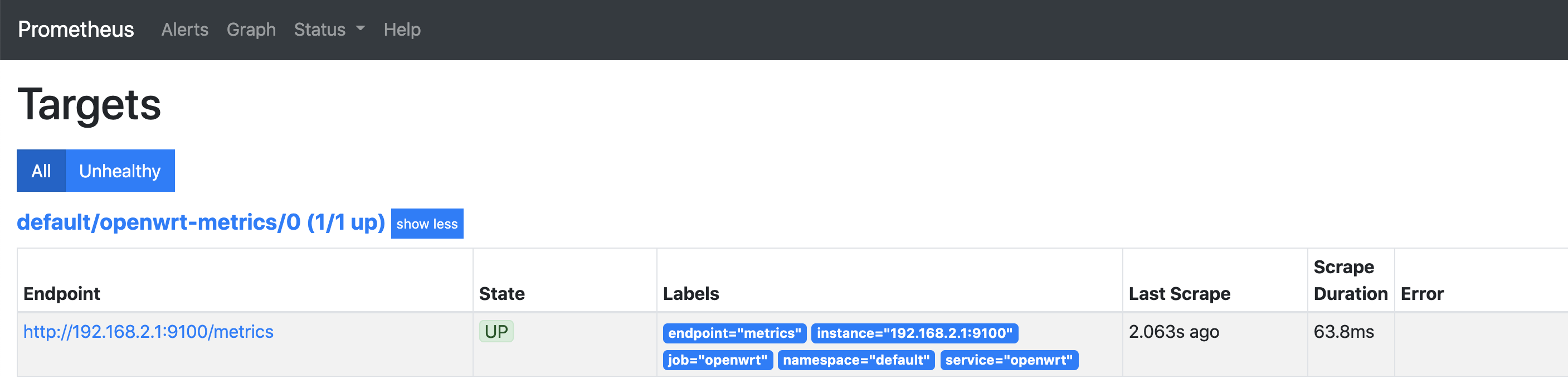 OpenWRT 的 exporter 默认只监听在 loopback 里, 所以我们需要调整配置文件它监听在内网里.